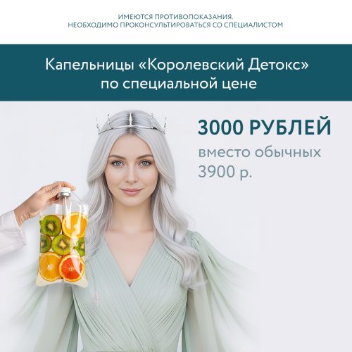 Только до Нового Года у тебя есть уникальный шанс подготовить организм к предстоящим испытаниям — праздничным застольям, алкогольным вечеринкам и плотной еде — с помощью капельницы «Королевский Детокс» по специальной цене!