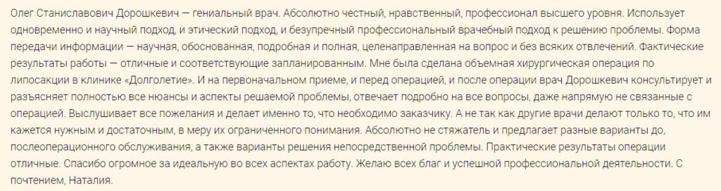 Для многих, кого заинтересовала липосакция в СПб, отзывы других пациентов становятся решающим аргументом за или против этой процедуры. В медицинском центре «Долголетие» вы можете не только заказать операцию, но и получить консультацию опытных врачей, которые помогут вам принять информированное решение.