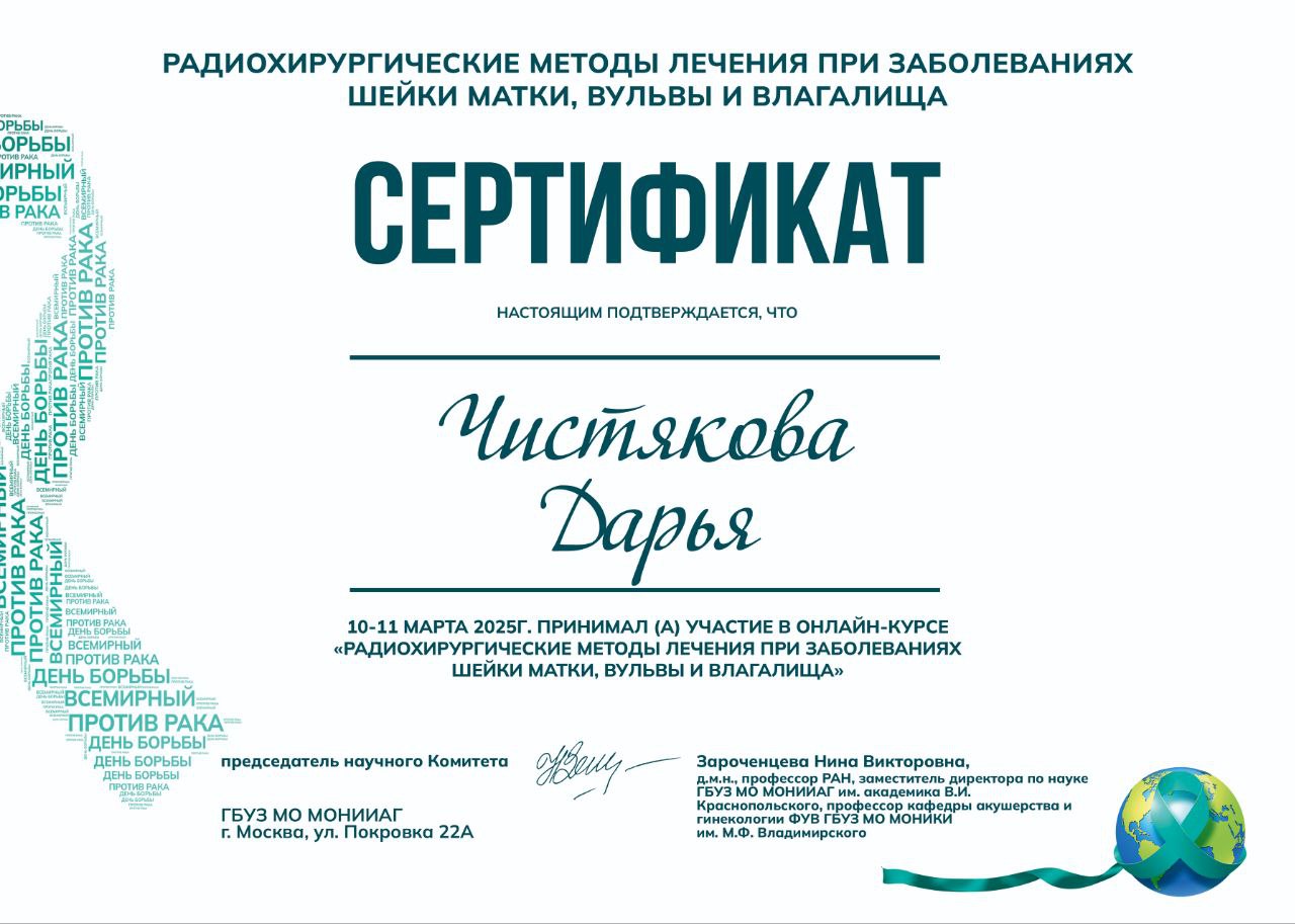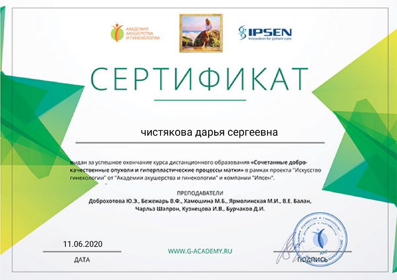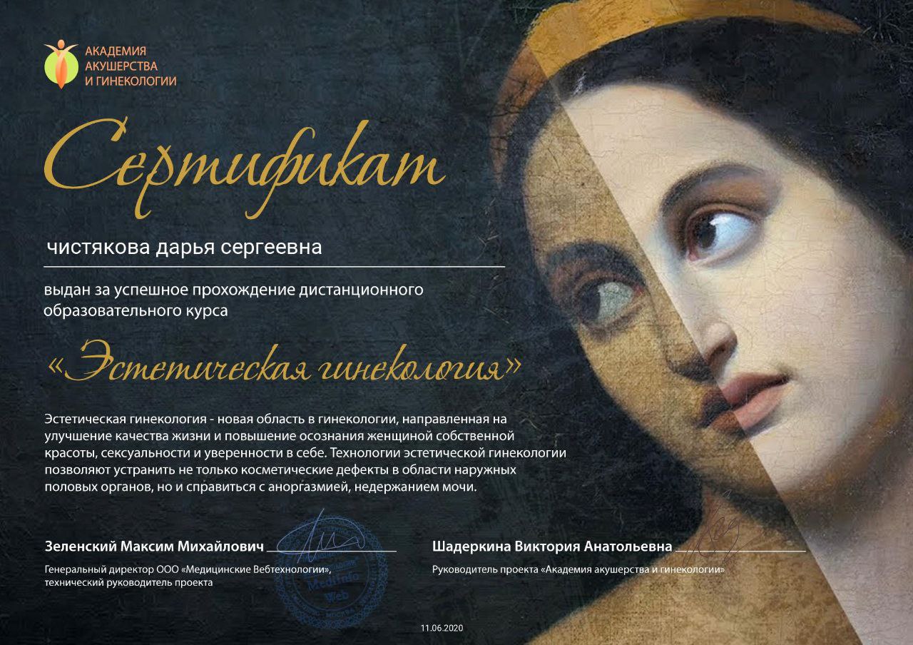 Защитила кандидатскую диссертацию на тему «Роль овариальной недостаточности в патогенезе невынашивания беременности» (2009 год).