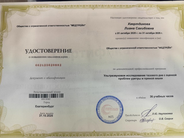 - Курс повышения квалификации: «Ультразвуковое исследование тазового дна с оценкой проблем уретры и прямой кишки» 1. 10-31. 10. 2025