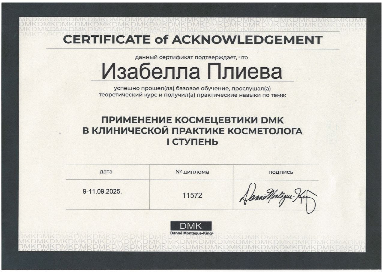 • 2023 г.: Медицинский университет инноваций и развития, косметология