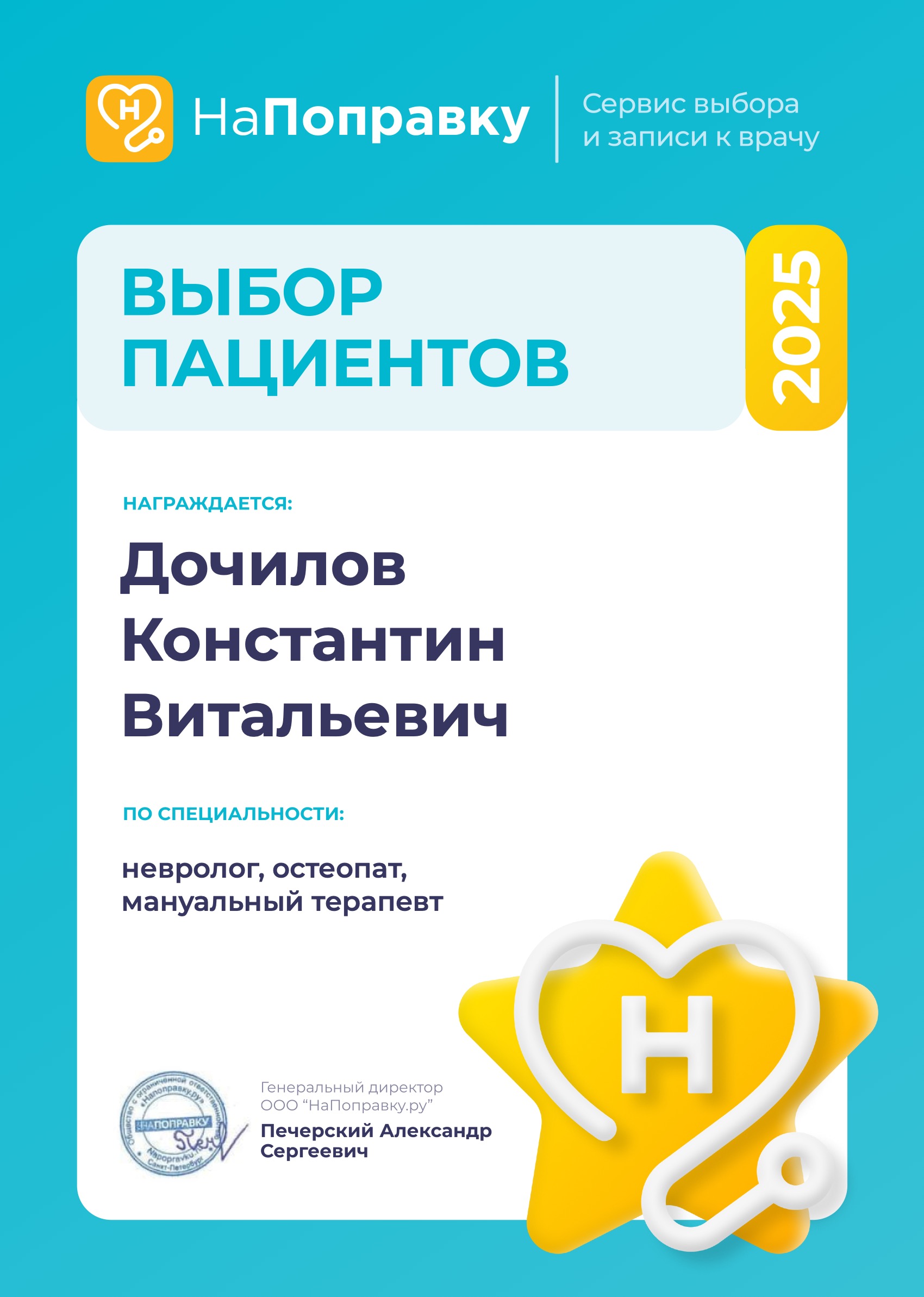 Принимает взрослых и детей. Руководит отделением неврологии. Занимается диагностикой, терапией и профилактикой заболеваний центральной и периферической нервной системы. Практикует мануальную терапию, остеопатию с 2002 года.