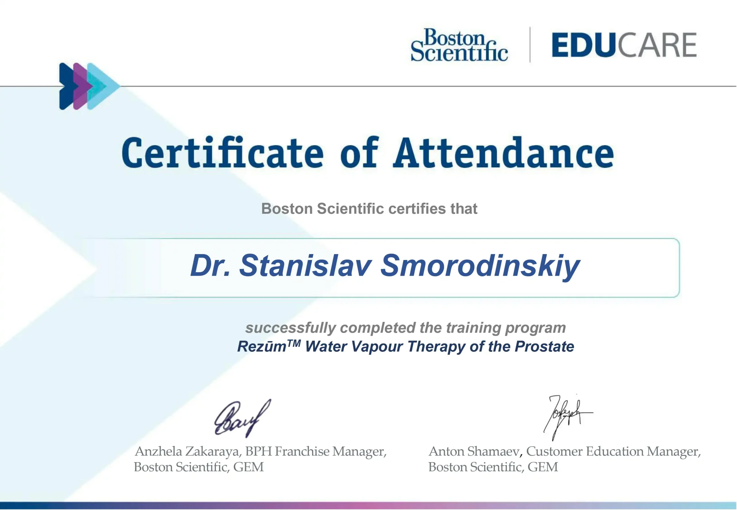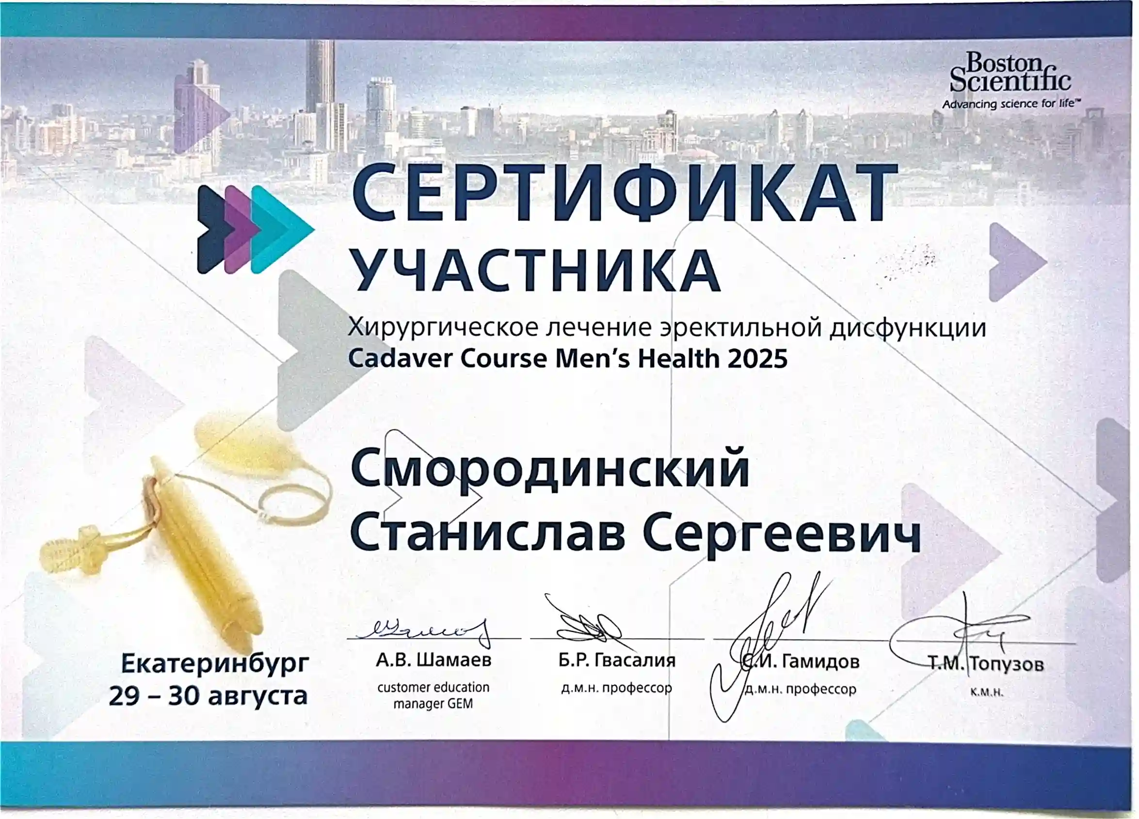 • Около 10 лет хирургического опыта. Действующий сертификат по урологии (2020 года).